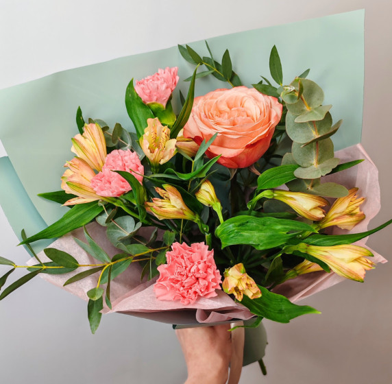 Свежий ветер из кустовых роз и альстромерий
