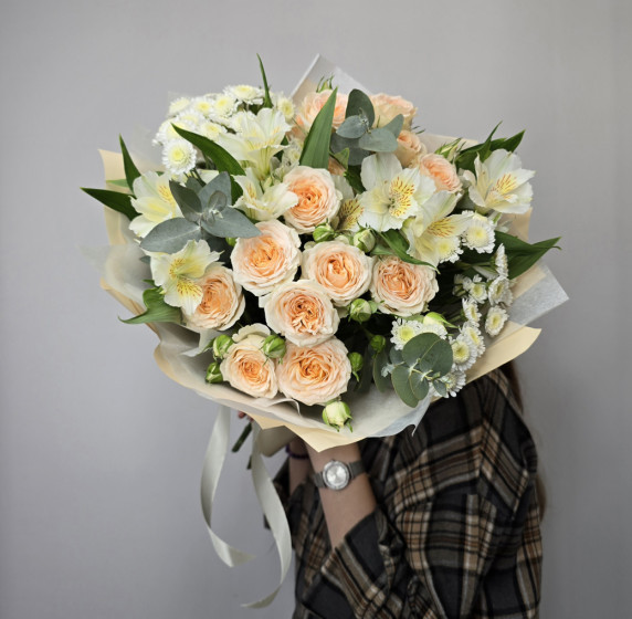 22-1.Артистка с кустовыми розами и альстромериями